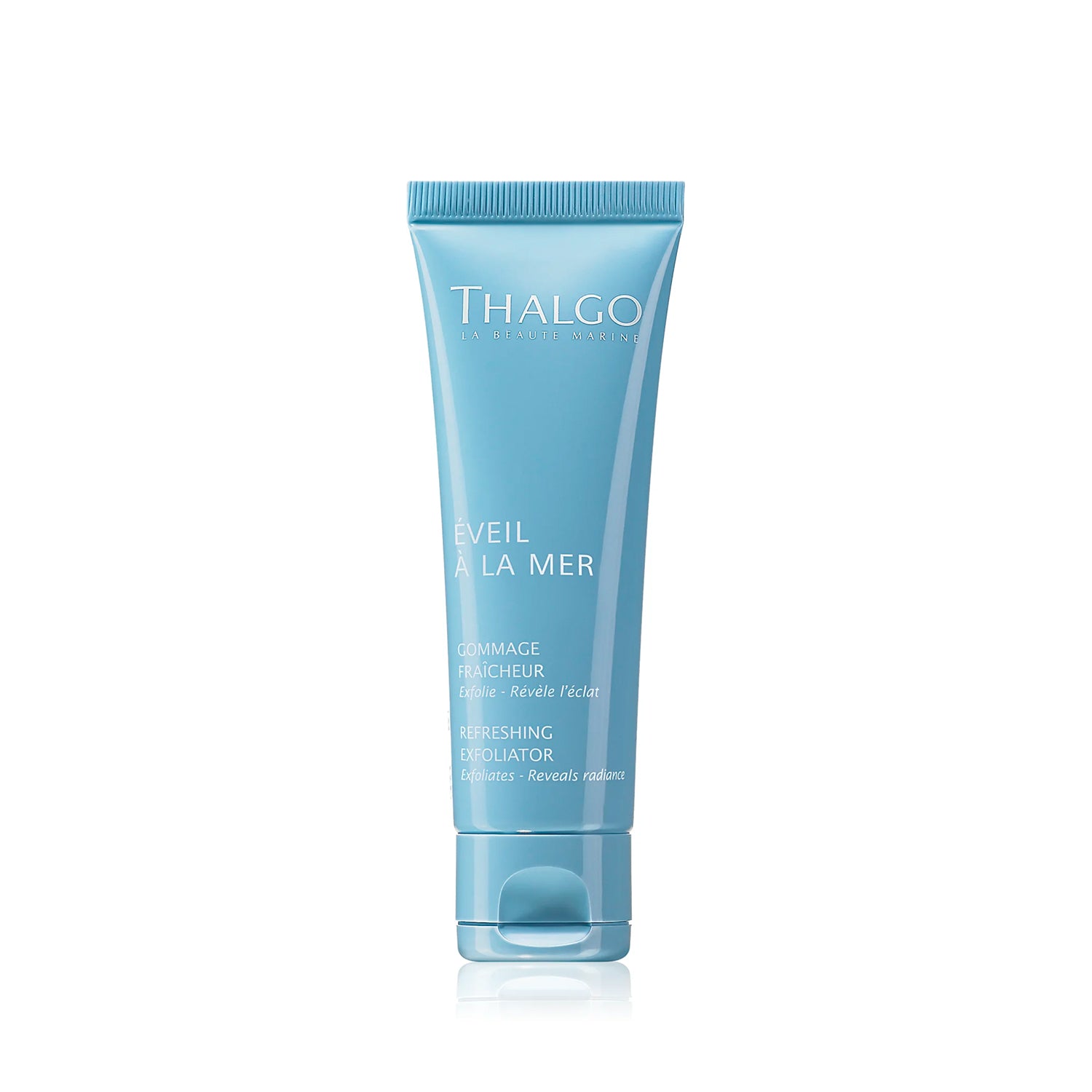 Para restaurar o brilho e a suavidade da sua pele, inclua o esfoliante facial Thalgo Éveil à la Mer Refreshing Exfoliator na sua rotina de cuidados com a pele. A fórmula desta máscara é enriquecida com esfoliantes naturais (partículas esfoliantes) que removem a pele morta e seca da pele de forma eficaz mas suave. Além disso, sua textura em gel torna essa experiência agradável.