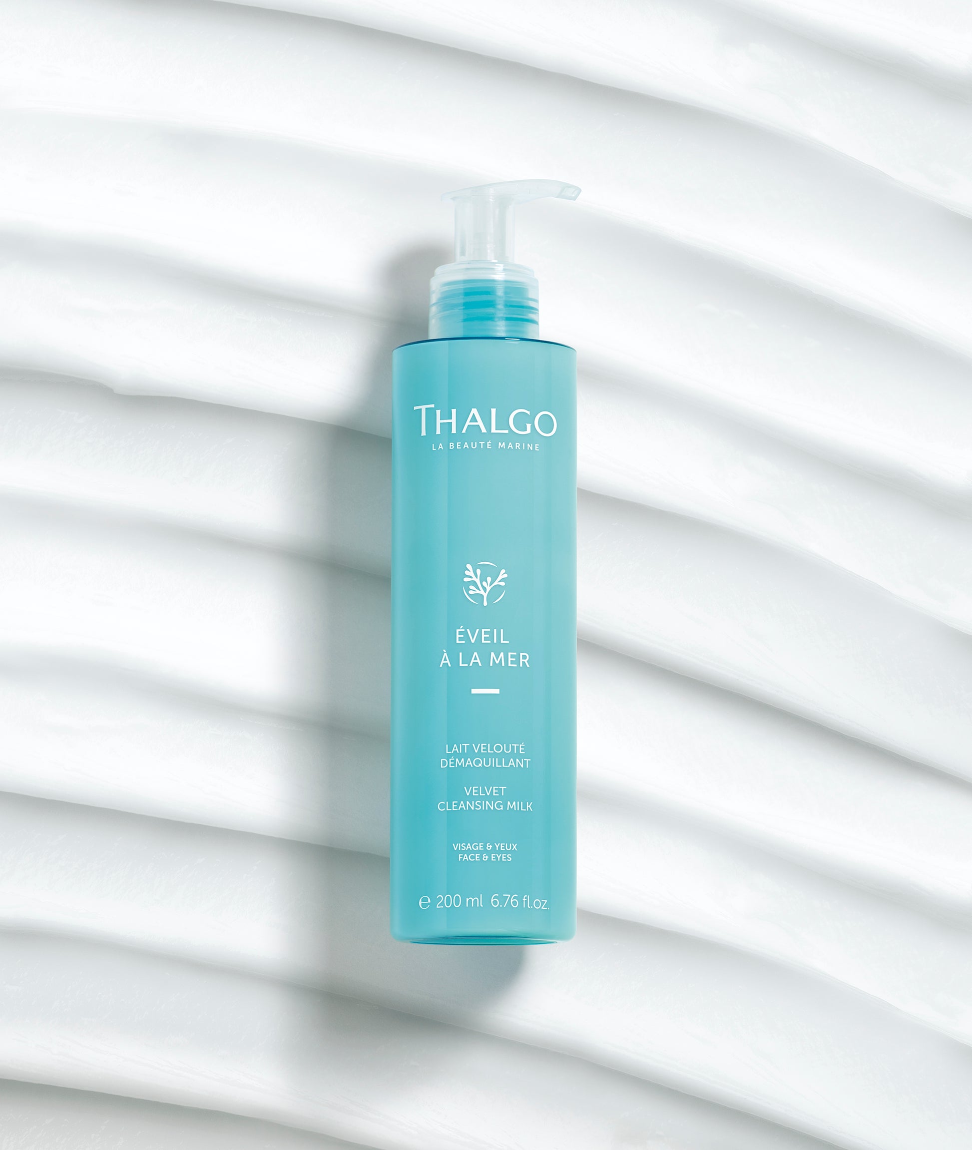 Thalgo Éveil à la Mer Velvet Cleansing Milk remove perfeitamente a maquiagem e outras impurezas do rosto, deixando a pele macia e limpa.
