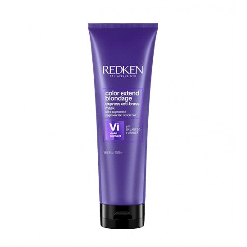 Redken Blondage Express Anti-Brass Mask é uma máscara de cabelo roxa ultra pigmentada para cabelos loiros que garante um loiro mais brilhante e frio em apenas 5 minutos. Com uma poderosa fórmula tonificante, esta máscara capilar ajuda a corrigir e neutralizar tons de amarelo e laranja indesejados.