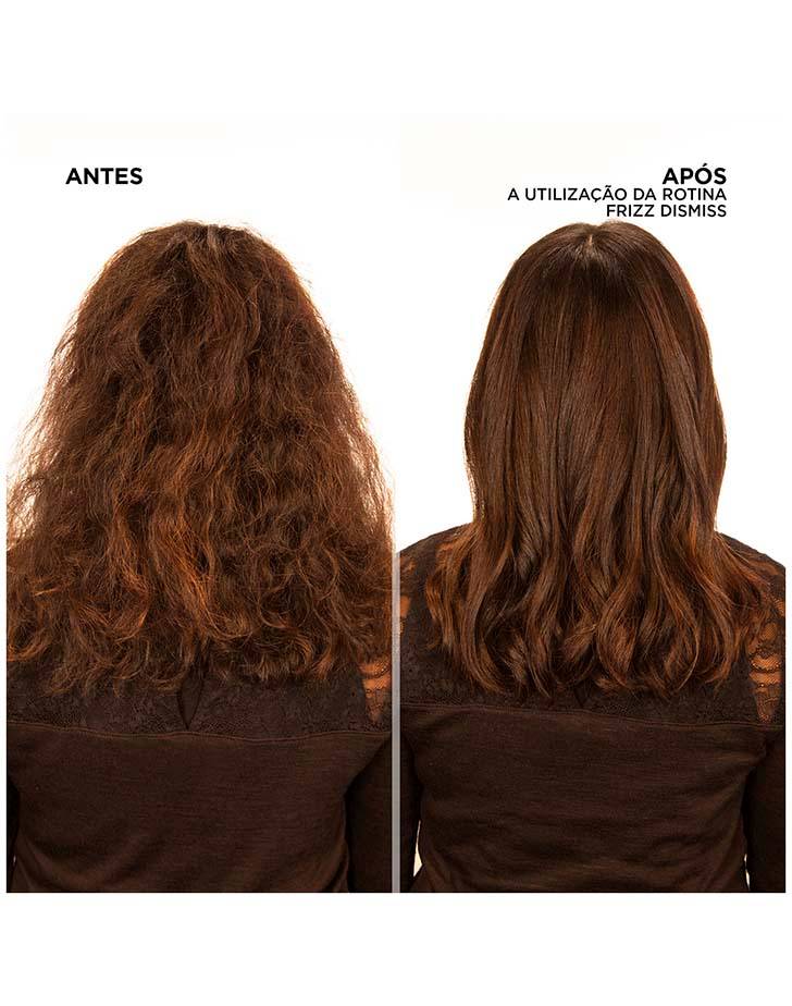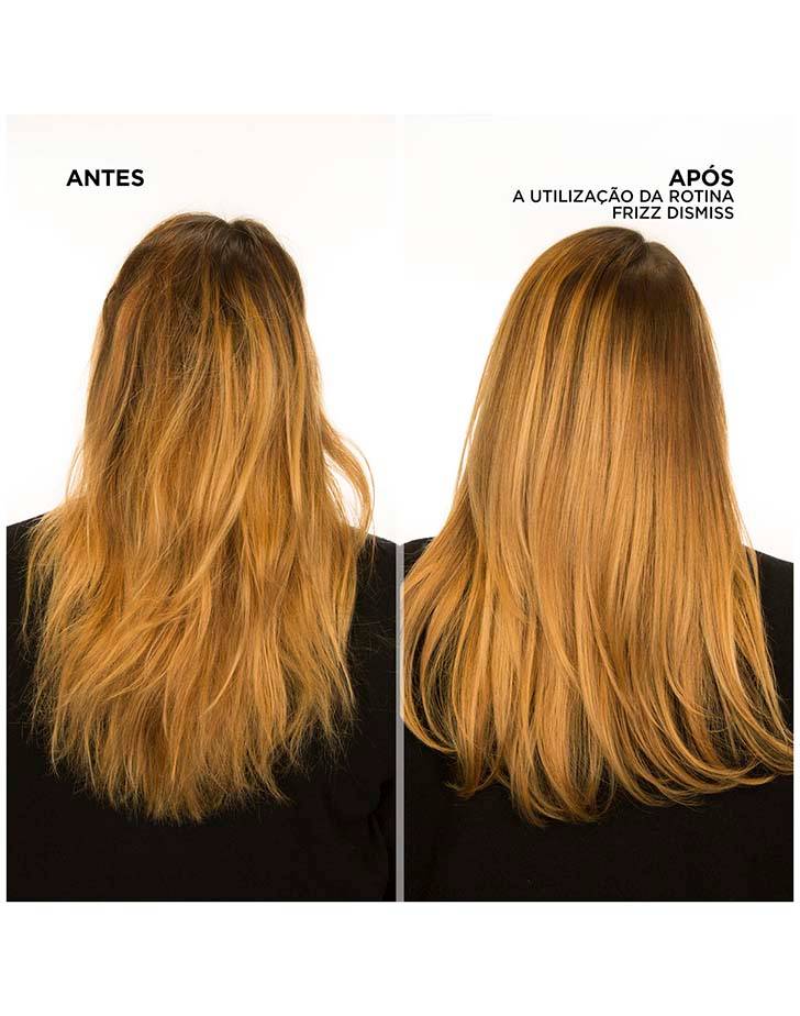 Após o shampoo Frizz Dismiss, aplicar no cabelo seco pela toalha. Deixar atuar entre 5 a 15 minutos. Enxaguar. Seguir com o Rebel Tame Leave-in. Usar uma vez por semana no lugar do condicionador Frizz Dismiss.